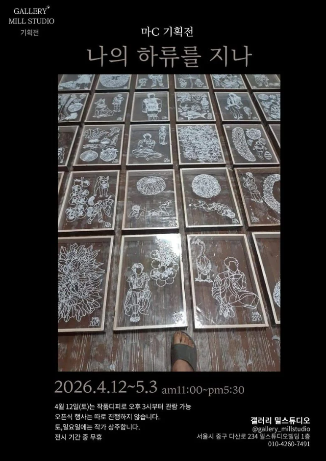 오는 5월 3일(일)까지 마C작가의 기획전 <나의 하류를 지나>를 개최됩니다. 이번 전시는 갤러리 밀스튜디오에서 기획한 4년 연속의 시리즈인데요. 작가의 독창적인 손바느질 드로잉 연작을 선보입니다. 독특한 전시를 좋아하시는 분들께 강력추천합니다!